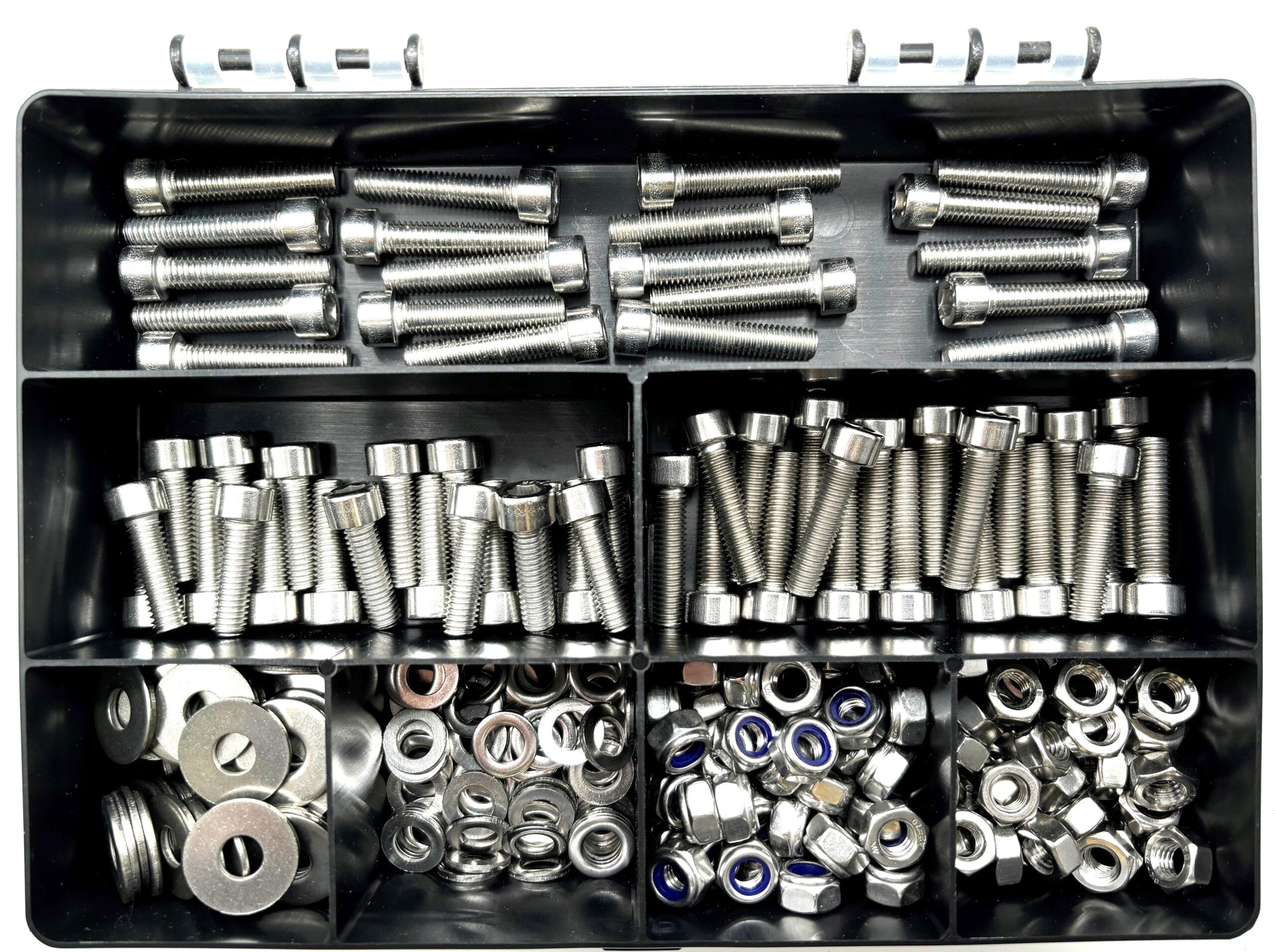 This mixed box offers a versatile selection of sizes, perfect for motorbike enthusiasts that need to benefit from anti corrosion, high durability and lightweight construction.